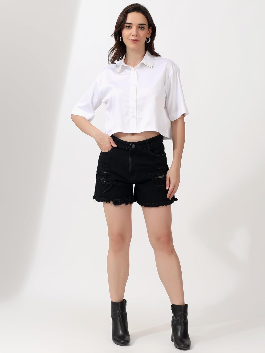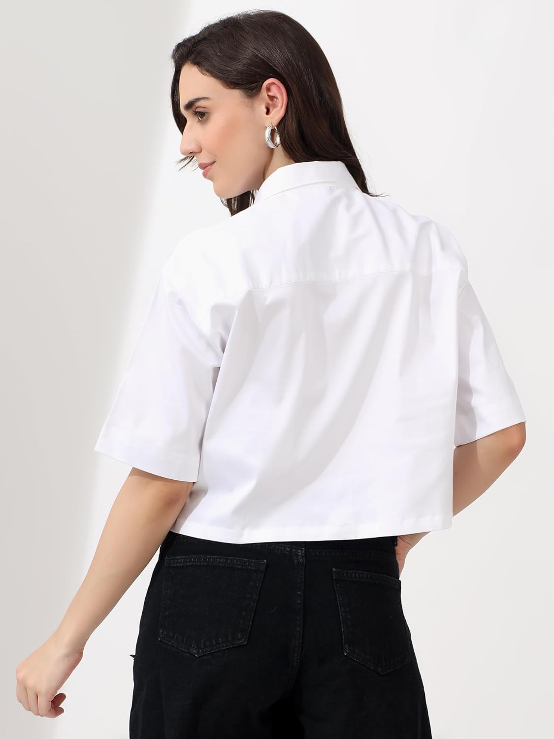 MULTIPLE OCCASIONS: With a button-down front closure and short sleeves, this cropped shirt is suitable for casual outings, work, or social gatherings.